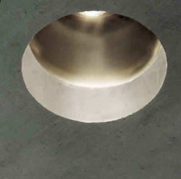Aus dieser foro kommt kein Licht, dafür aber Musik. Der Lautsprecher ist soweit zurückversetzt, dass sich die gleiche Sichtkante der Betondecke ergibt.